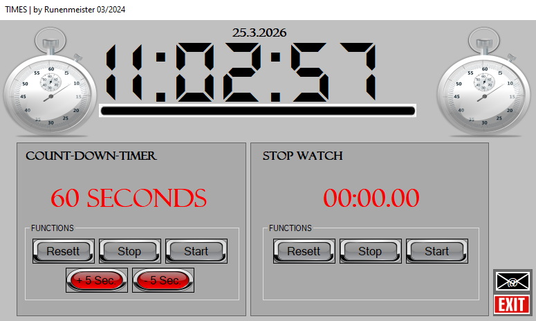 o Starten der Funktionen Stopuhr und Counter