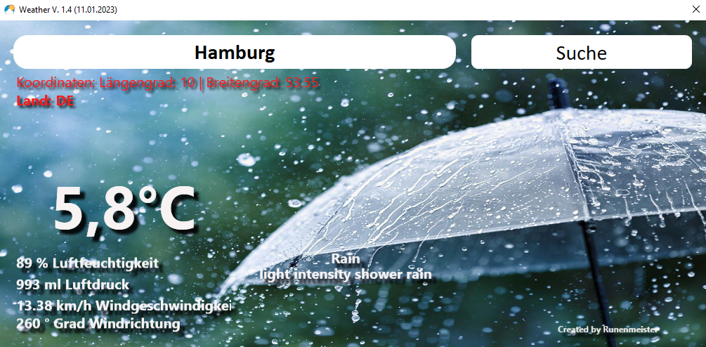 o Wechsel des Hintergrundbildes an Hand der aktuellen Wetterlage